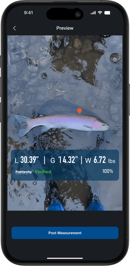 Fishtechy is an innovative AI-powered tool that's perfect for our fly fishing tournament, allowing anglers to measure their catches quickly, accurately, and with minimal stress to the fish. It's especially great for catch-and-release events like ours, where preserving the health of trout is key. At its core, Fishtechy uses a small, portable device called the Proof Ball (an orange, golf-ball-sized reference object) combined with a free mobile app to analyze photos or videos of your fish. This eliminates the need for bulky measuring tapes or scales, reducing handling time and potential harm to delicate species like brown and rainbow trout.